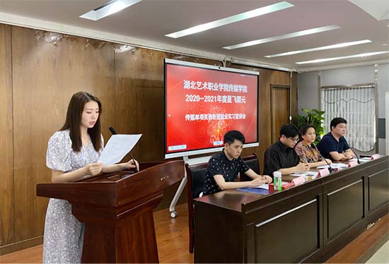 传媒学院党总支书记邱艳、院长李俊军、办公室主任胡冬梅、辅导员芦杨;影视技术教研室主任韩衍,教师杨骏、卢建、闫新悦;播音主持专任教师刘润东、杨敏学;武汉星飞熙元传媒有限公司行政总裁汪汝旭、运营总监朱晓蒙、总制片余琴参加大会。