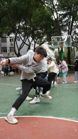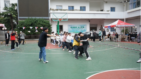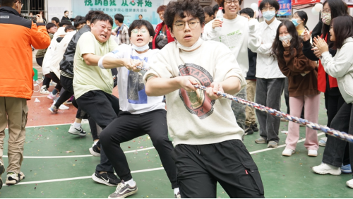 拔河:集体的努力,众人的配合,在一阵阵呐喊与掌声中化作无穷的动力。参赛同学纵情地投入着,运动会现场,气氛热烈而高涨。助威声此起彼伏,跃动的倩影形成了一道美丽的风景线,衬出靓丽的青春。