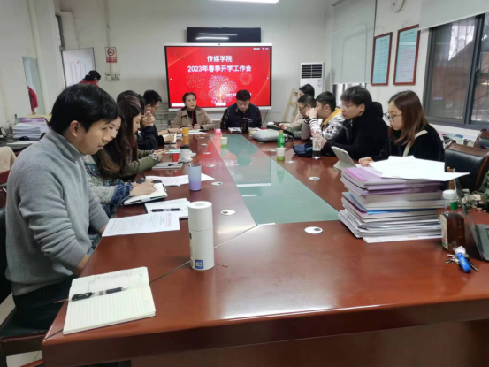 2月23日下午,我院召开2023年春季学期开学准备工作会议,安排部署春季开学各项准备工作。传媒学院党总支书记邱艳主持会议,院长李俊军、办公室主任胡冬梅、表演教研室主任潘琼、影视技术教研室主任韩衍、播音与主持教研室主任刘润东及本院全体教职工参会。