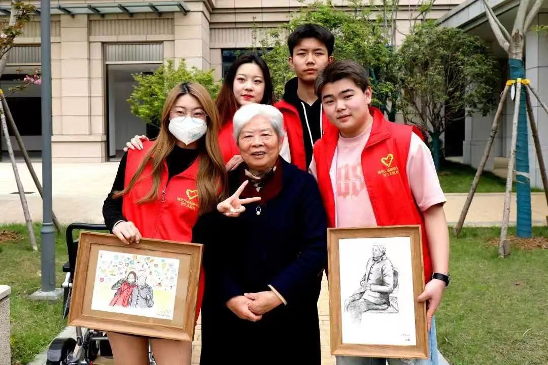 设计学院志愿者们来到湖北省医养康复中心,开展爱老助老志愿服务。志愿者们分工明确,有的志愿者与老人们促膝围坐,面对面亲切交谈,询问老人们的身体状况和饮食起居情况;有的给老人们整理房间、打扫卫生,为老人营造舒适的居住环境;有的同学为老人们画画,结合设计专业学生的专业特色,为老人们速写实景,记录生活;有的学生为老人写贺卡送祝福,在贺卡上为老人们写下温馨的祝福语。
