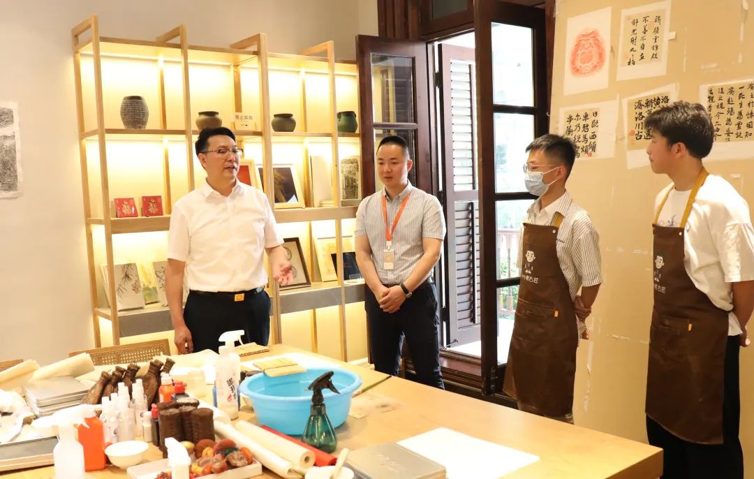 启动仪式结束后,参加活动的领导嘉宾、师生代表参观了湖北艺术职业学院文物修复与保护专业教学成果展。杨峻峰指出,文物修复与保护专业是我们学校的传统优势专业,“薪火班”为学生提供了很好的成长平台。他勉励学生,要沉下心来,用心用情用力做好每一天的事,持续学习和积累,不断精进技艺,在实践的磨砺中成长为未来的大国工匠。作为第一届“薪火班”的学员,要进一步增强责任感和使命感,提升专业自信、文化自信,为文化强国建设贡献自己的专业价值。