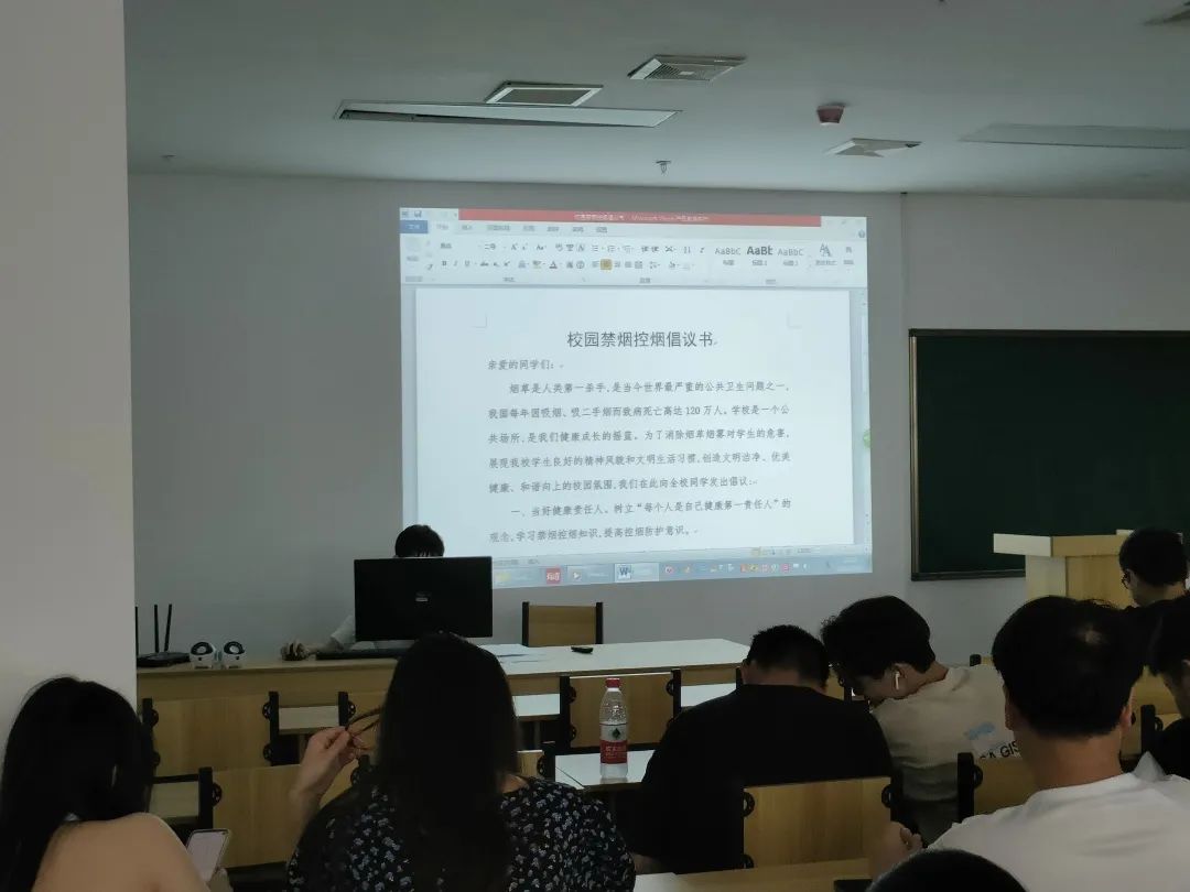 烟草依赖是一种慢性疾病,烟草危害是世界最严重的公共卫生问题之一,吸烟和二手烟问题严重危害人类健康。积极建设"无烟校园”,是新时代加强师德师风建设和学生思想道德建设的重要内容,是创建美好生活社区、文明校园的重要组成部分,是关心师生身心健康和消除校园安全隐患的重要举措。为了进一步营造舒适整洁的校园环境,助推文明校园创建工作,以“小举动”呼唤“大文明”。在第36个世界无烟日即将到来之际,设计学院组织开展了系列禁烟主题活动。