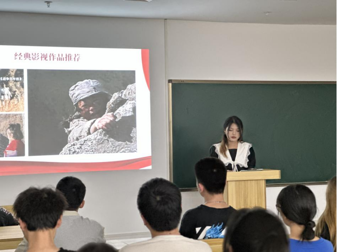 本次学习活动由设计学院方方老师主持。活动中,优秀积极分子张霄鹏、杨鑫磊、唐子玄同学分别从红色美术作品赏析、读书分享交流和经典影视作品推荐等三个部分,给大家做了分享与交流。