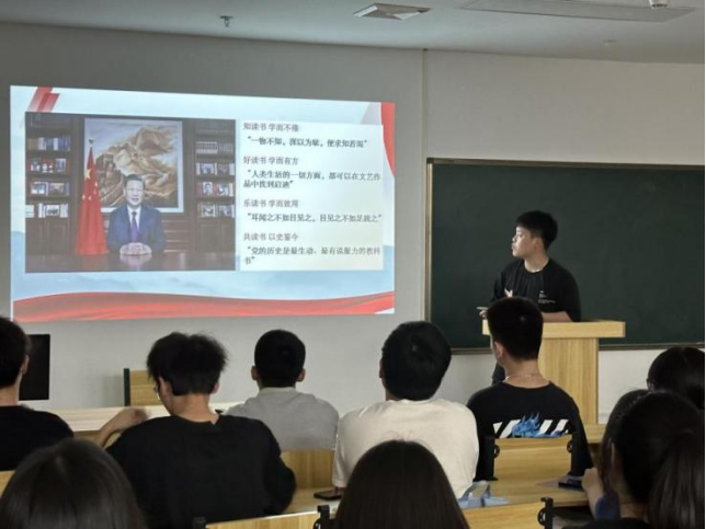 杨鑫磊同学向大家推荐了几本书籍,引导激励学生爱读书、读好书、善读书。改变“追求享乐、玩物丧志,不好读书;热衷应酬、忙于事务,不勤读书;浅尝辄止、不求甚解,不善读书;学而不思、知行不一,学用脱节”现象,真正把读书学习当成一种生活态度、一种工作责任、一种精神追求。读书之法要同工作实际结合起来,在学习历史知识的时候,要坚持马克思主义的历史观和方法论,不能读死书,要同工作实际结合起来,对所读之书要取其精华、去其糟粕,做到“博学之,审问之,慎思之,明辨之,笃行之”,知古鉴今、古为今用。这样才能在我们认识和处理现实问题中发挥历史知识应有的积极作用。