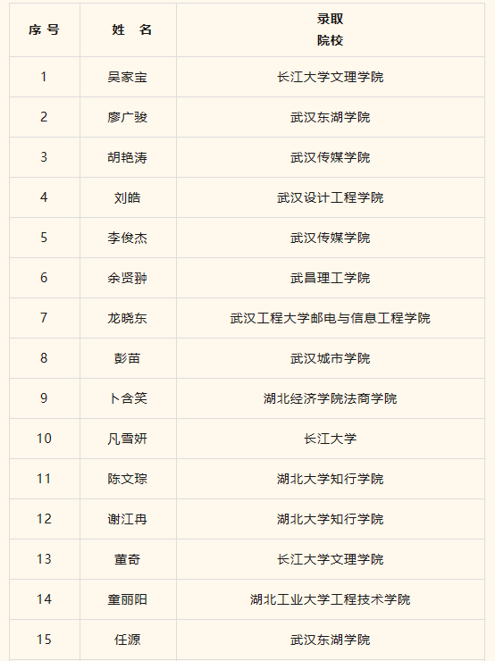 六月飞歌,金榜传捷。2023年5月底,各大专升本院校陆续公布拟录取名单,设计学院专升本60名同学被:长江大学、武汉生物工程学院、武汉传媒学院、武汉设计工程学院、湖北汽车工业学院、江汉大学等多所本科院校录取。