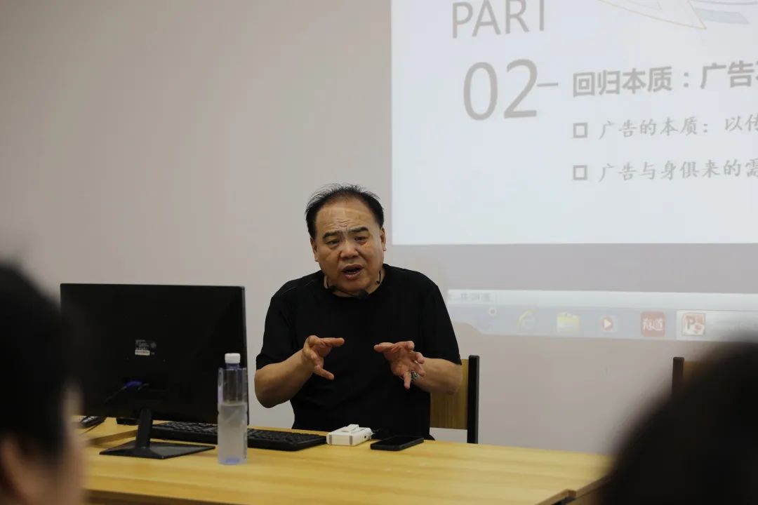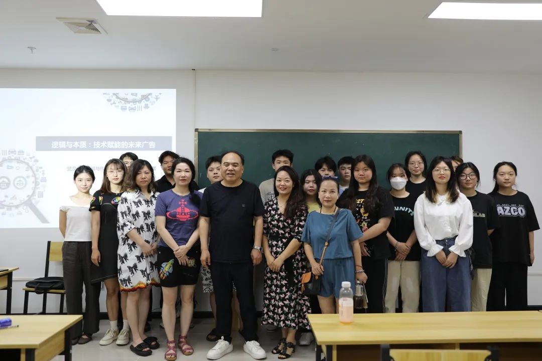 2023年6月12日星期一,设计学院广告新媒体专业在凯乐桂园K2001开展主题为《紧扣大广赛——如何以赛促学》讲座,邀请武汉大学新闻与传播学院教授、博士生导师、武汉大学“珞珈特聘教授”、湖北省广告学术委员会主任、全国大学生广告艺术大赛评委、“中国当代杰出广告人”、湖北省荆楚广告名师奖、中国广告学术杰出贡献人物姚曦教授作为主讲嘉宾。与会人员有广告新媒体专业教研室主任王薇及全体教研室老师。讲座由乔晨老师主持。