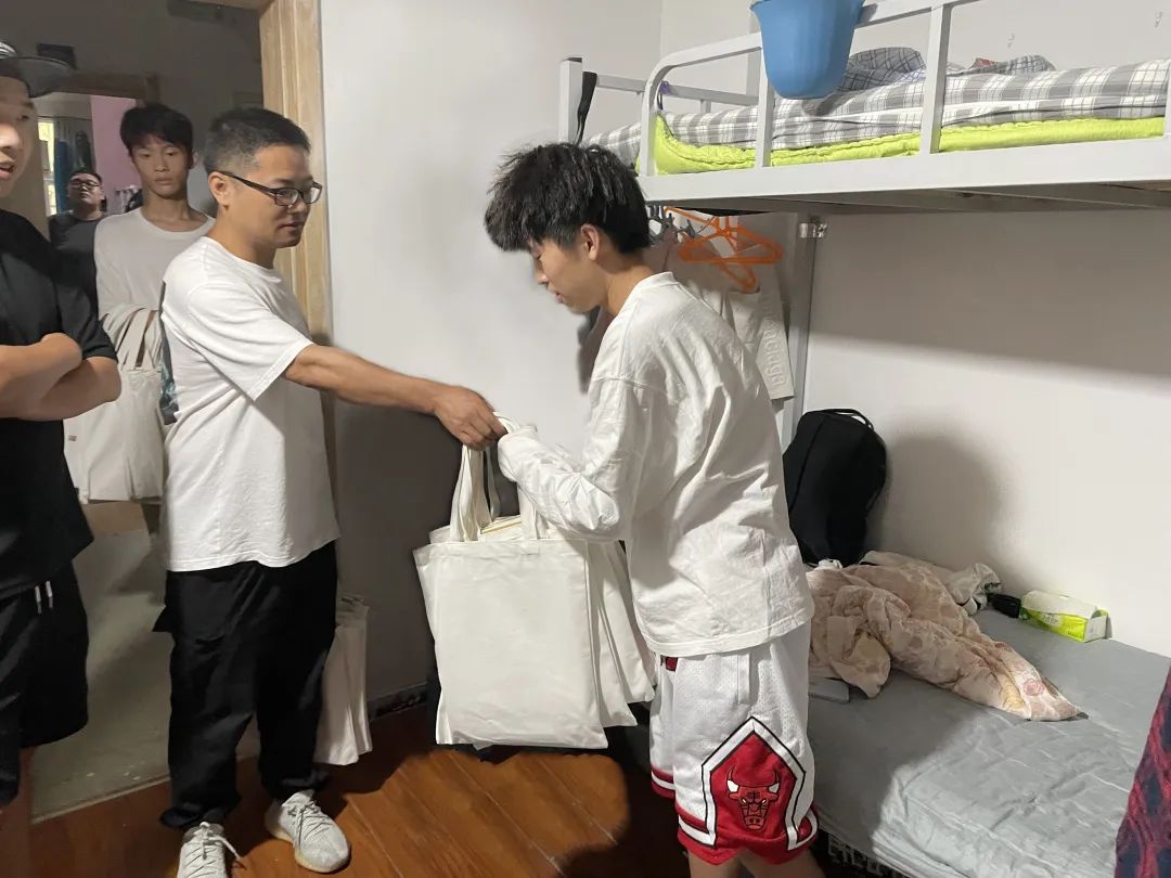 为深入了解2023级新生的生活状况、思想状态以及住宿情况,帮助新生更快的转变角色,适应新生活、新环境,激励大家以积极的精神面貌投入到大学校园学习和生活中,9月10日,设计学院钱坤书记带领各级辅导员深入学生宿舍,为新生送去暖心的关怀和问候。