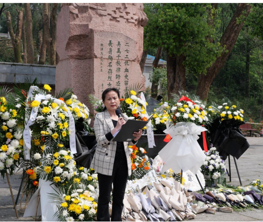 南北山头多墓田,清明祭扫各纷然。又是一年清明节,为了激发同学们对革命先烈的崇敬之情,缅怀革命先烈,厚植红色基因,2024年4月3日,传媒学院学生党支部前往武汉施洋烈士陵园开展“再现英烈,学习英烈”清明祭英烈主题教育活动,传媒学院党总支书记邱艳、学生党支部书记熊辂一同带领传媒学院教师党员及入党积极分子前往参加。