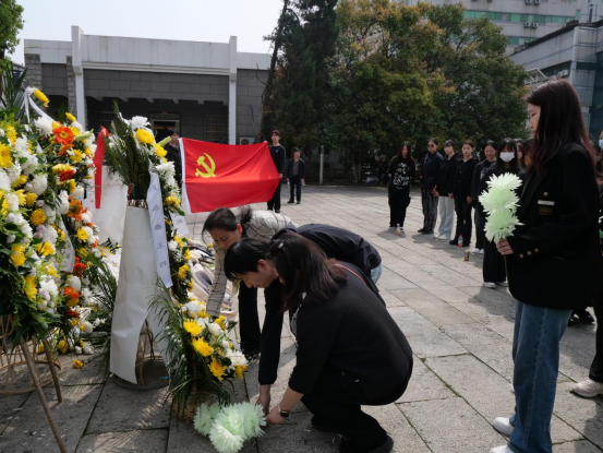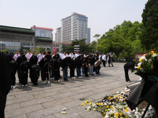 最后,全体师生向施洋烈士雕像鞠躬默哀,邱书记带领老师和同学们依次上前献花,寄托哀思,全体成员瞻仰施洋烈士纪念碑、烈士墓,向施洋烈士致以崇高的敬意,深切缅怀革命先烈的丰功伟绩。