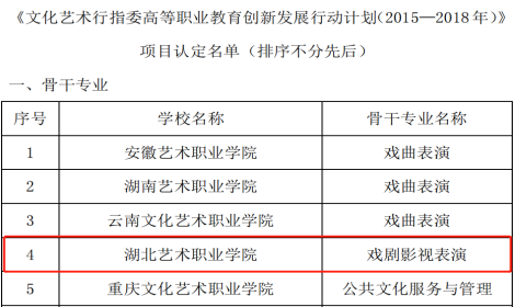 文化和旅游部全国高等职业教育创新发展行动计划骨干专业:戏剧影视表演