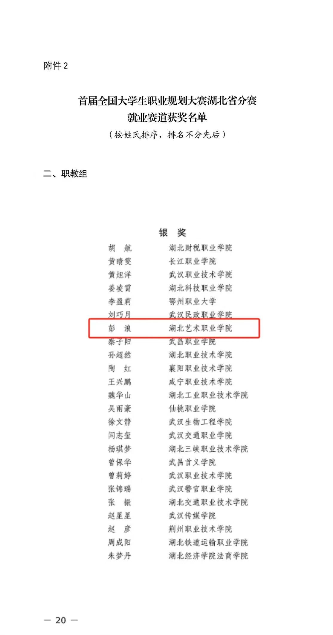 经过激烈角逐彭浪荣获职教组就业赛道银奖胡恒升荣获职教组成长赛道铜奖