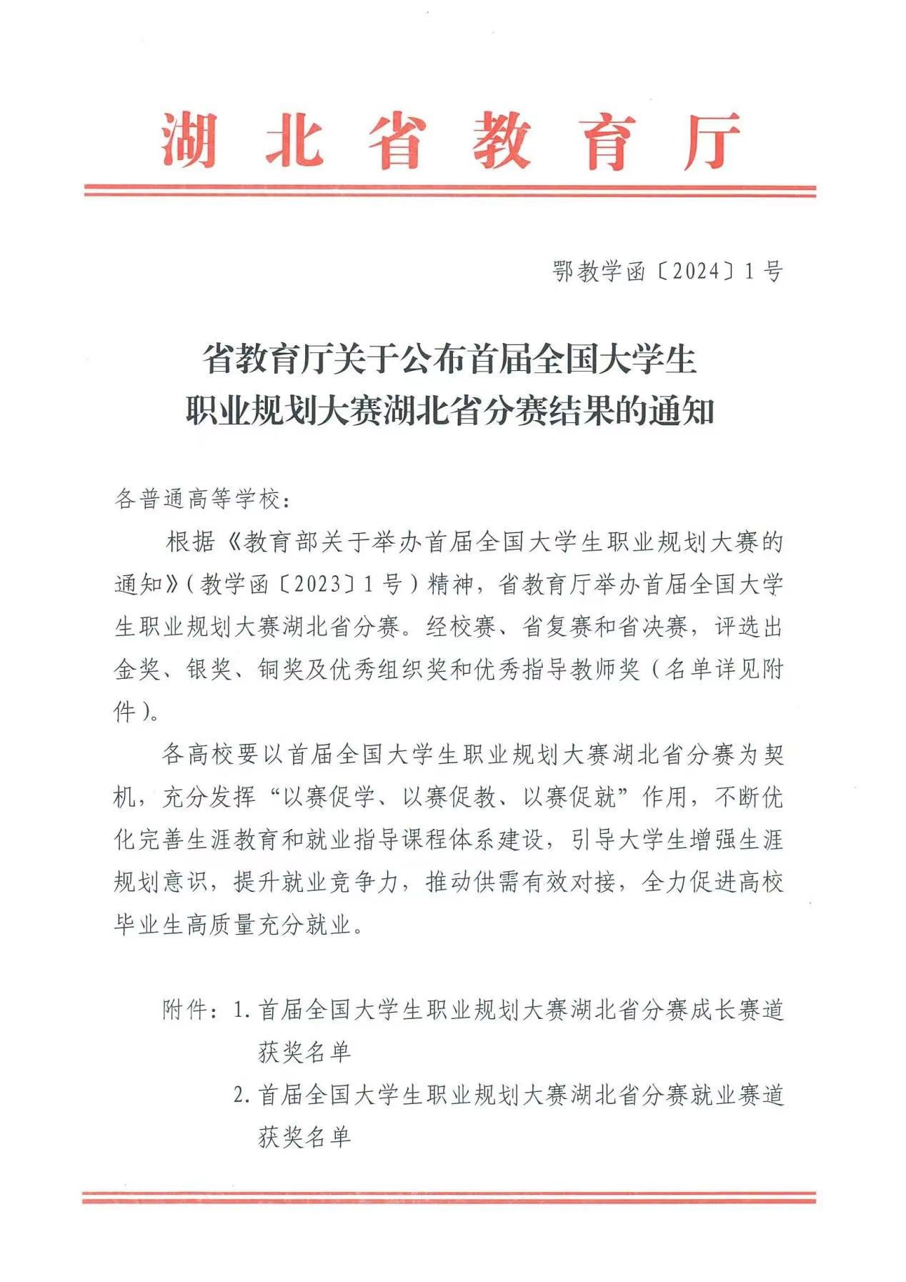 湖北省分赛结果公布