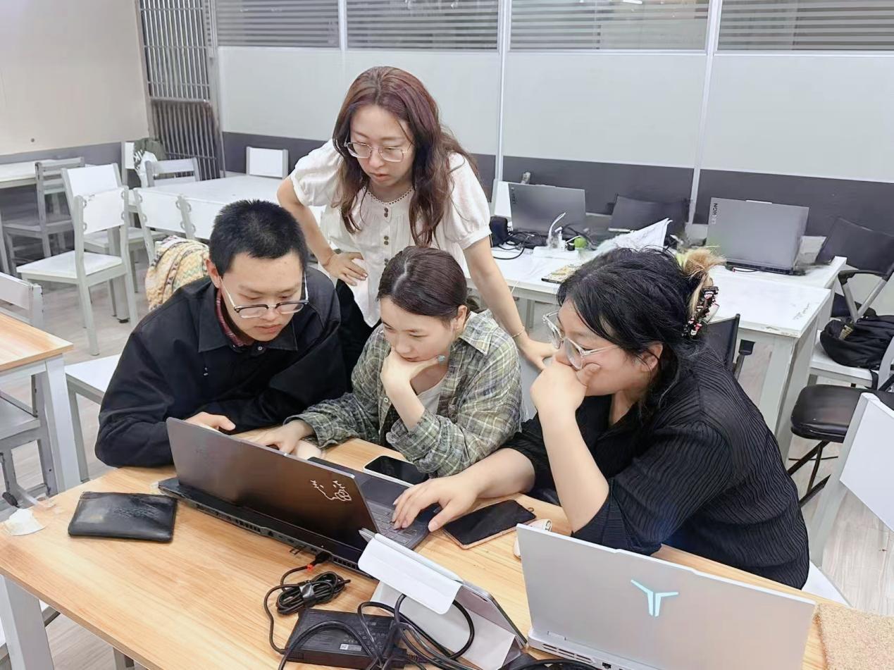 数字艺术设计赛道赛题设置涵盖骨骼绑定与动画设计、引擎特效渲染、音视频剪辑合成等多个高难度环节,同时此次艺术设计赛道(高职)打破了传统赛制,全新升级,自主命题的形式对于团队合作、专业技能展现等都是一种挑战。师生们潜心研究,反复推敲作品细节与实施步骤,遇到难题共同探讨、协作解决,在一次次演练中完成多轮方案迭代,细节中凝聚着心血与智慧。