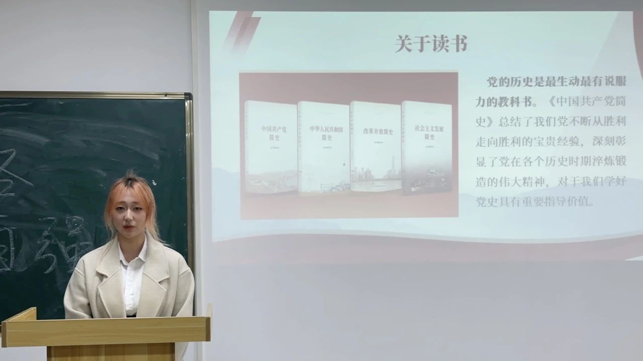 本次活动由28期优秀积极分子李兵兵、董语熙、彭小平同学分别从红色美术作品赏析、读书分享交流、经典影视作品推荐三个部分展开,和大家进行交流分享。