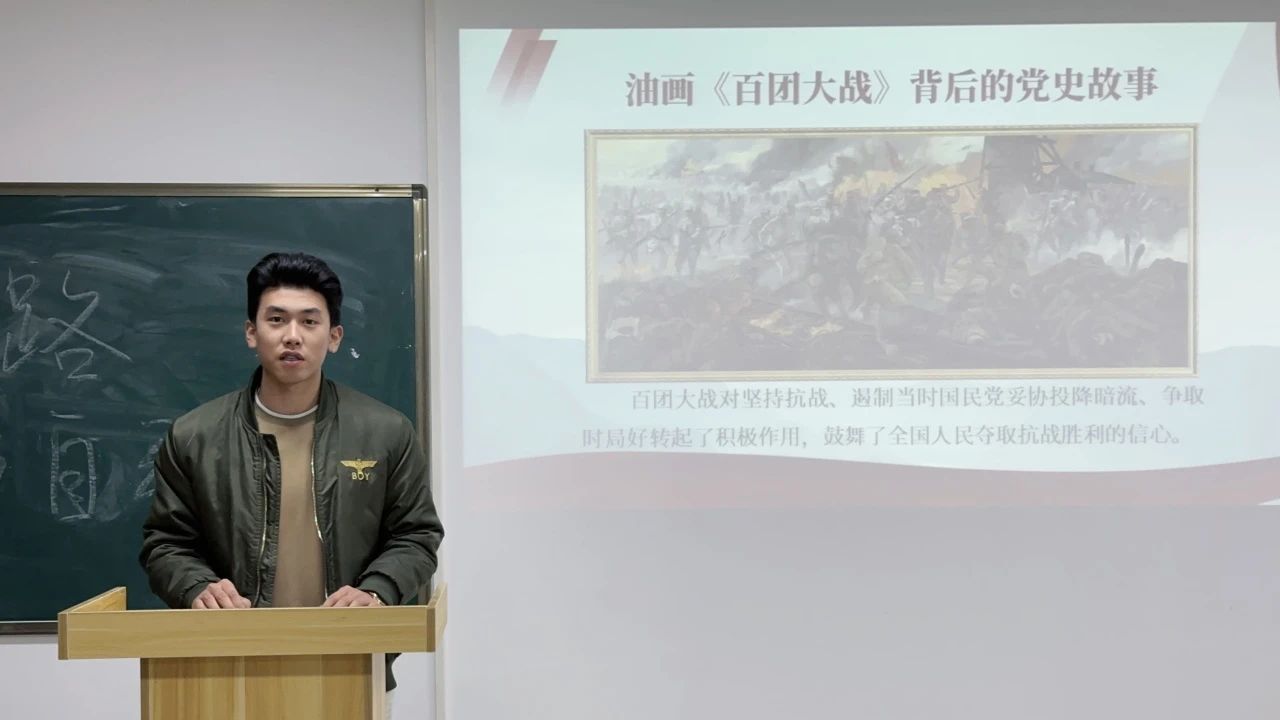李兵兵同学对孙立新的油画作品《百团大战》进行赏析。