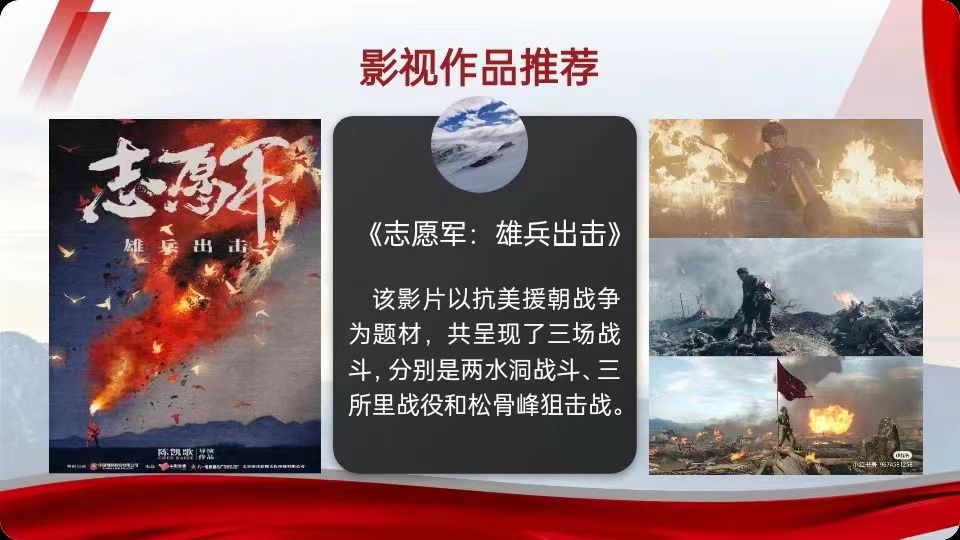 彭小平同学向大家推荐抗美援朝的影片《志愿军:雄兵出击》。