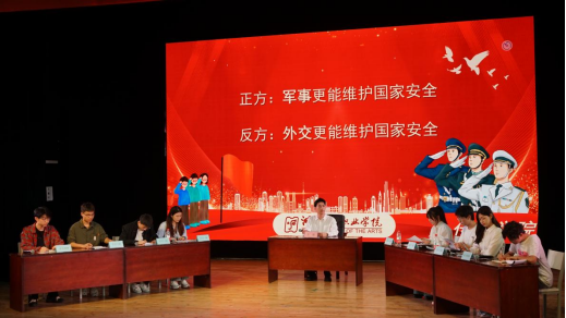 此次辩论赛正方辩题是“军事更能维护国家安全”,反方辩题是“外交更能维护国家安全”。正方认为,强国必须强军,军强才能国安。军事力量对于国家安全至关重要,一个拥有强大军事力量的国家能够有效抵御外部势力的侵犯和威胁,保护国家领土完整和主权独立。强大的军事力量还能够为国家在国际舞台上争取更多的话语权和影响力。反方认为,外交是维护国家长治久安的重要途径。观苏秦挂六国相印、一带一路等事例可见,外交能为国家创造一个和平稳定的国际环境,增进国家间的了解与信任,从而减少战争与冲突的风险。