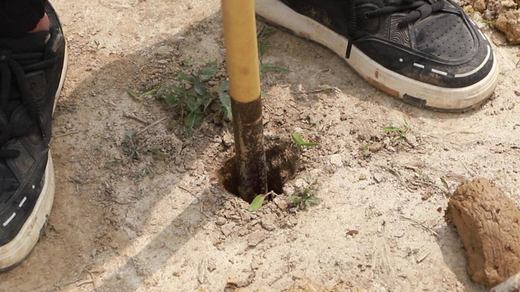 使用探铲(又称洛阳铲)来钻探