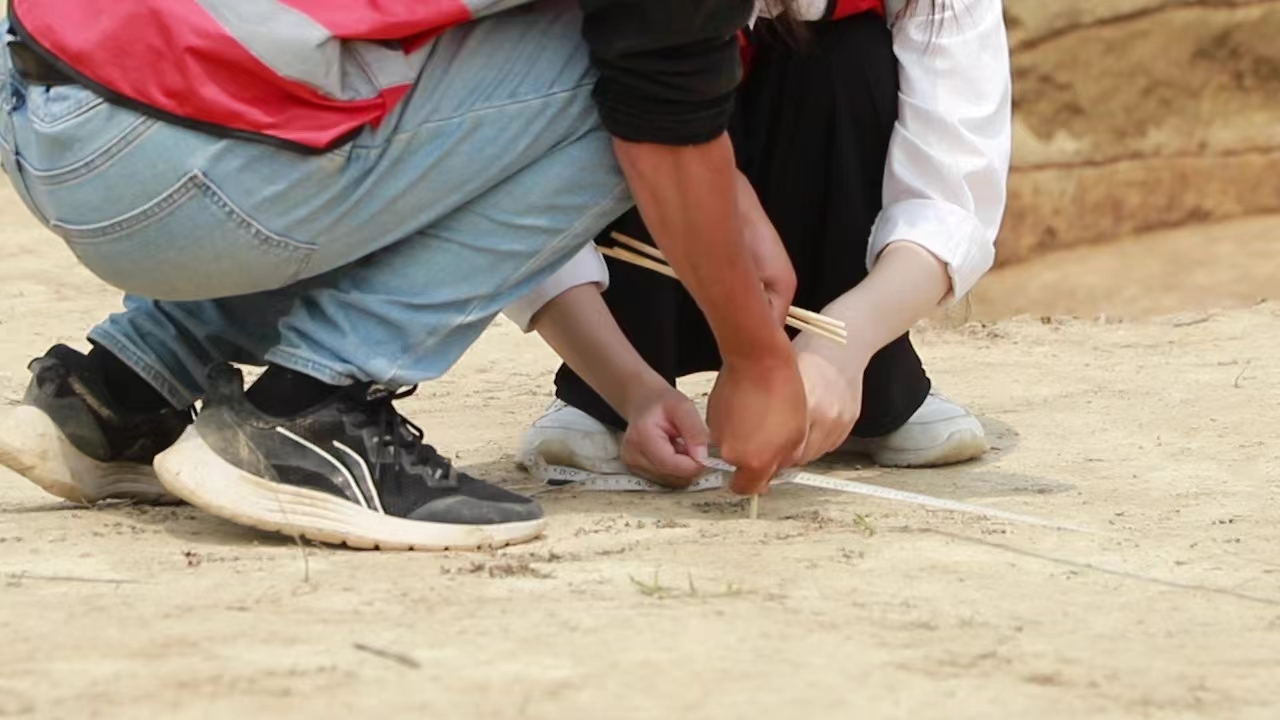 田野绘图:通过对花坛、房址绘图,让学生了解田野考古现场关于遗迹的图纸绘制、数据测量要点。