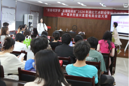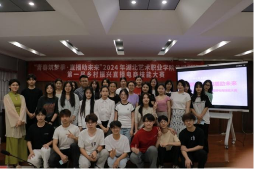 为推动直播电商业态的快速发展,引领大学生参与乡村振兴,进一步培育和挖掘电商主播人才,拓展乡村农副产品产销对接方式,链接优秀企业,促进我院学生在直播电商领域就业创业。6月4日,湖北艺术职业学院传媒学院第一届“青春筑梦季·直播助未来”乡村振兴直播电商技能大赛(决赛)在虎泉校区琴房六楼学术报告厅成功举办。这不仅是学生间直播技能的较量,更是一次为乡村特色产品打开新销路的创新实践。